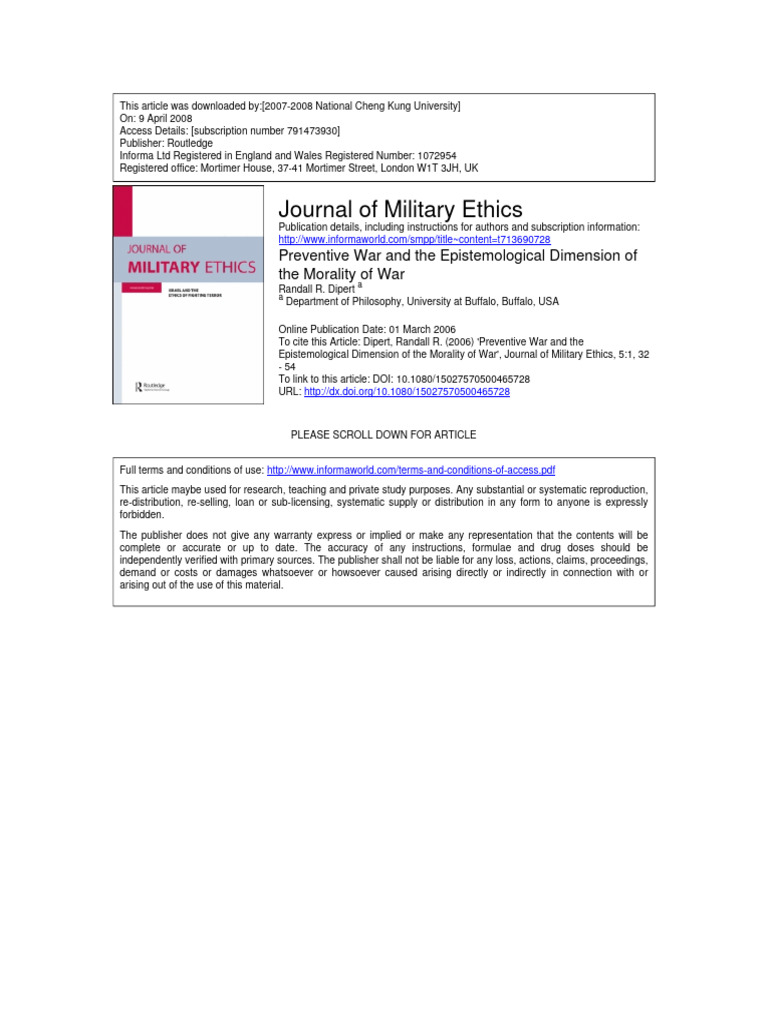 (06a) Preventive War and The Epistemological Dimension of The Morality