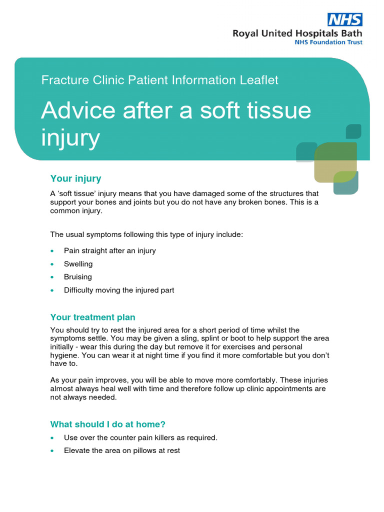 ORT052 Advice After A Soft Tissue Injury PDF Injury Surgical