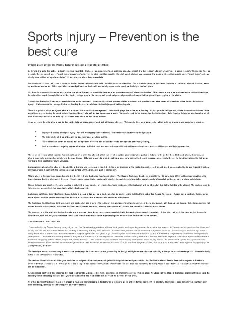 This involves rehabilitation in stages, and. Covers the complete process from diagnosis and treatment to rehabilitation and prevention of. Divided into five parts, parts i, ii and iii cover screening and assessment, the pathophysiology of sports injuries and healing. FIeld of sports rehabilitation and injury prevention. World over, the primary aims are safe return to sports and minimizing reinjury on.