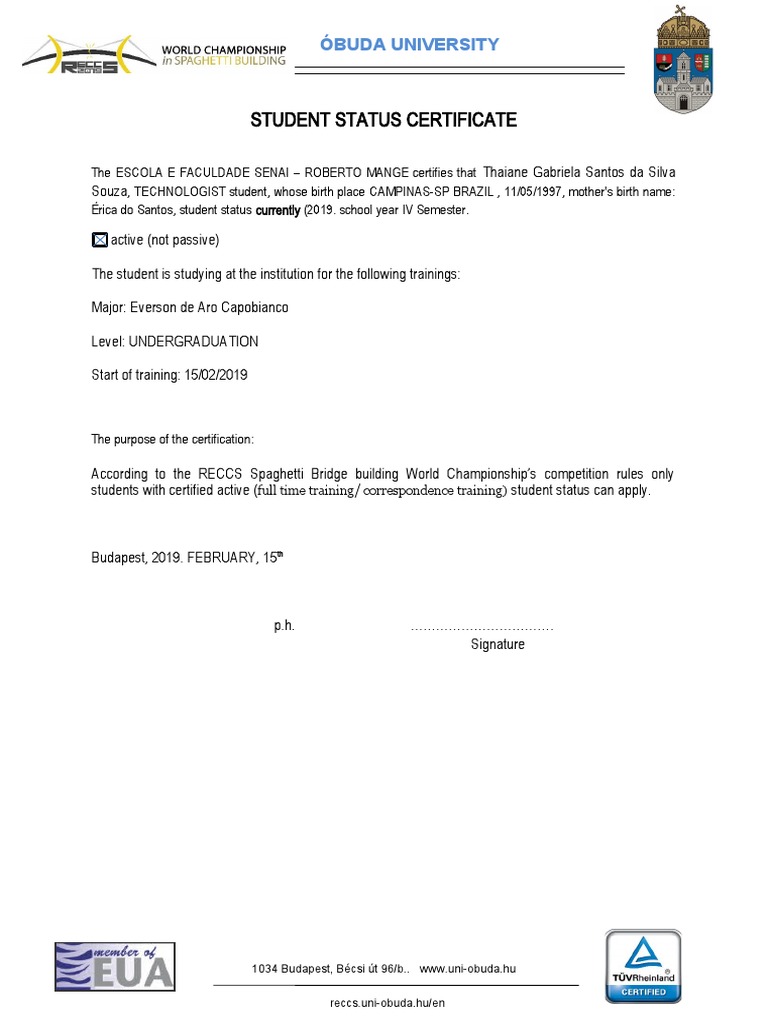 Student Status Certificate V2 SANTOS PDF