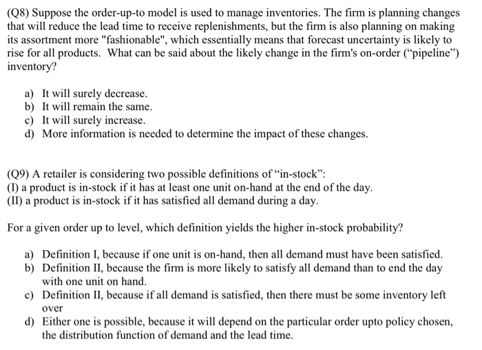 Solved (Q8) Suppose the orderupto model is used to manage