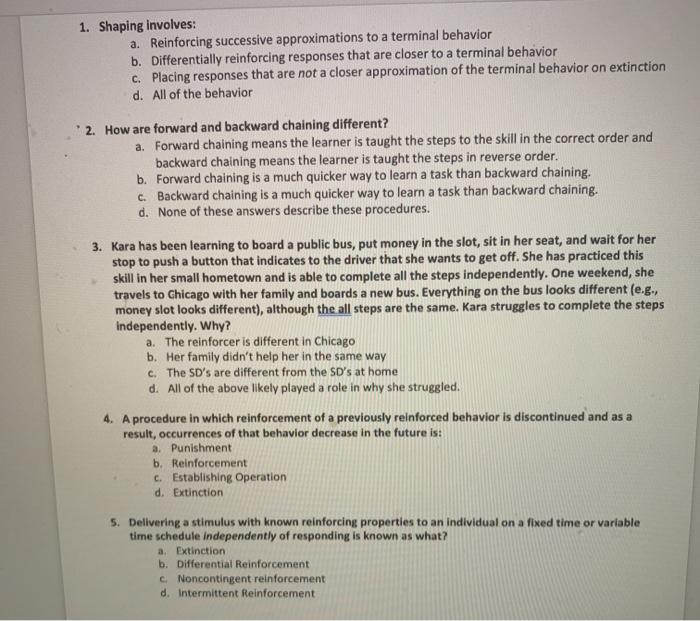 The process of systematically, differentially reinforcing successive approximations to a terminal behavior is commonly referred to as. The technique is used when students need to. Shaping is the differential reinforcement of successive approximations of a target behavior. To shape a behavior, a clinician. Shaping is the process of systematically and differentially reinforcing successive approximations to a terminal behavior.