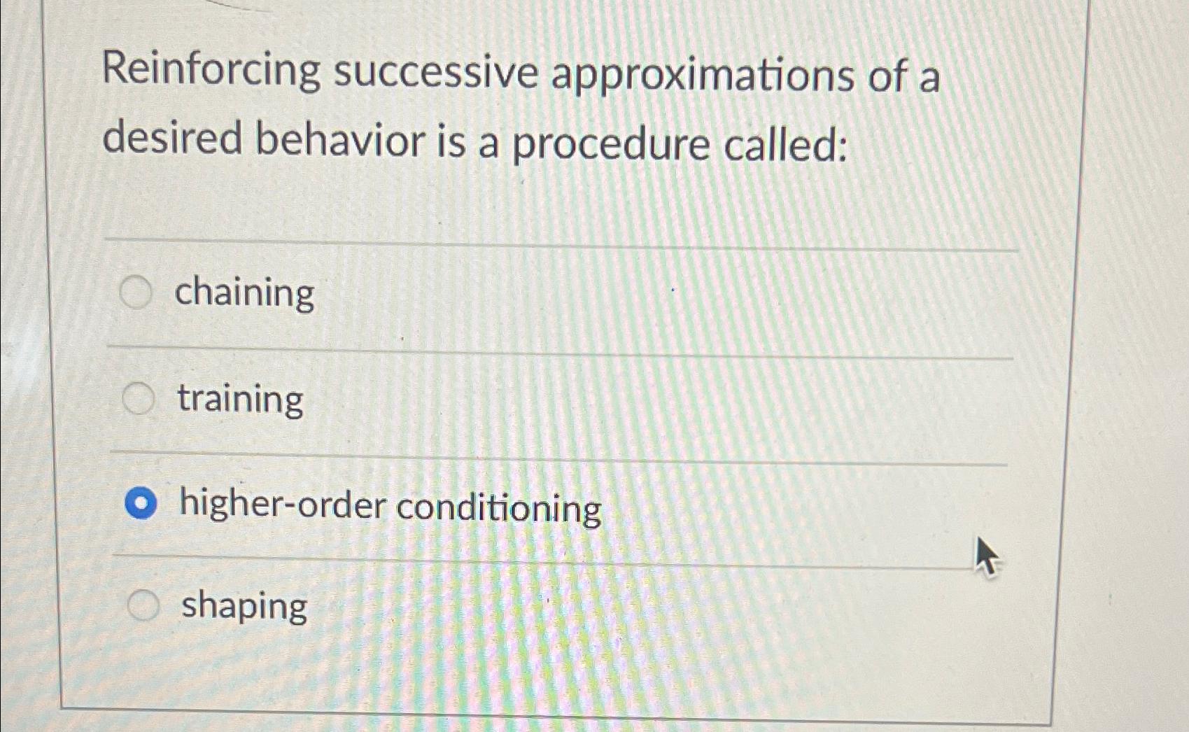 Shaping Is A Systematic Process Of Reinforcing Successive Approximations To A Target Behavior.