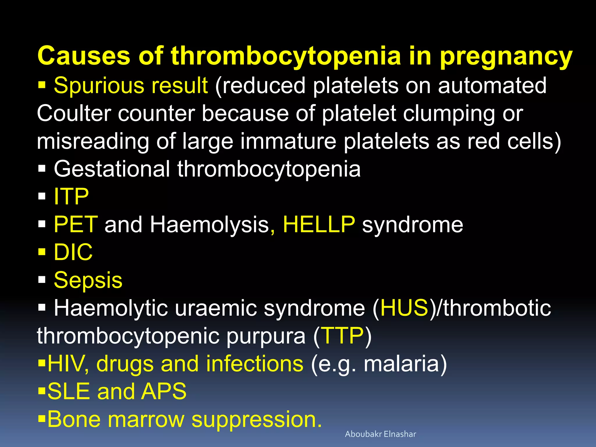 Thrombocytopenia develops in 5% to 10% of women during pregnancy or in the immediate postpartum period. This topic reviews our approaches to determining the cause of thrombocytopenia in a pregnant patient and to management during.
