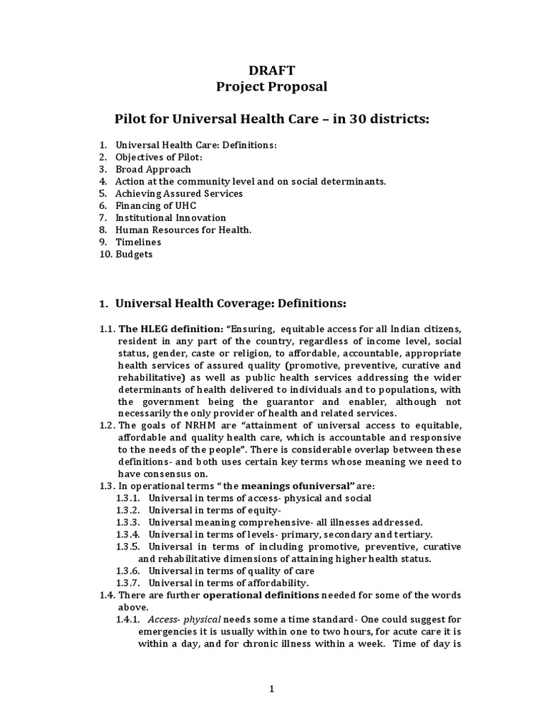 Draft UHC Pilot Project Proposal PDF Universal Health Care