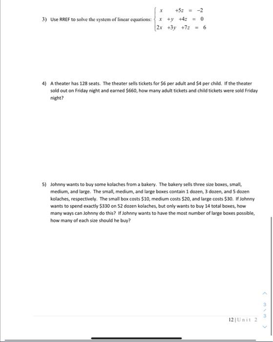 Solved 3) Use RREF to solve the system of linear equations