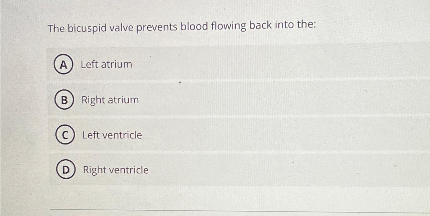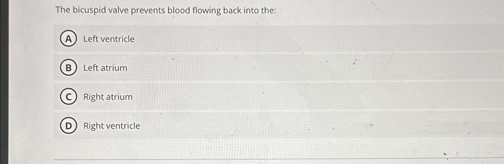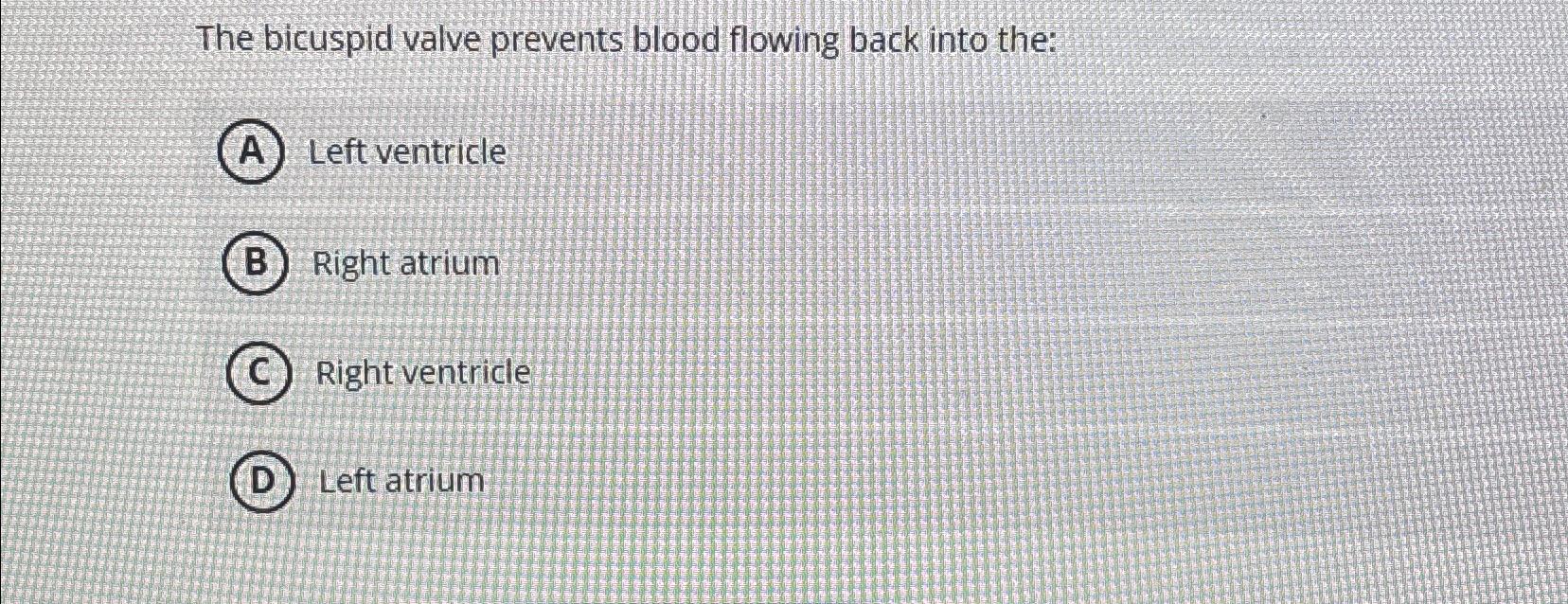 Solved The bicuspid valve prevents blood flowing back into