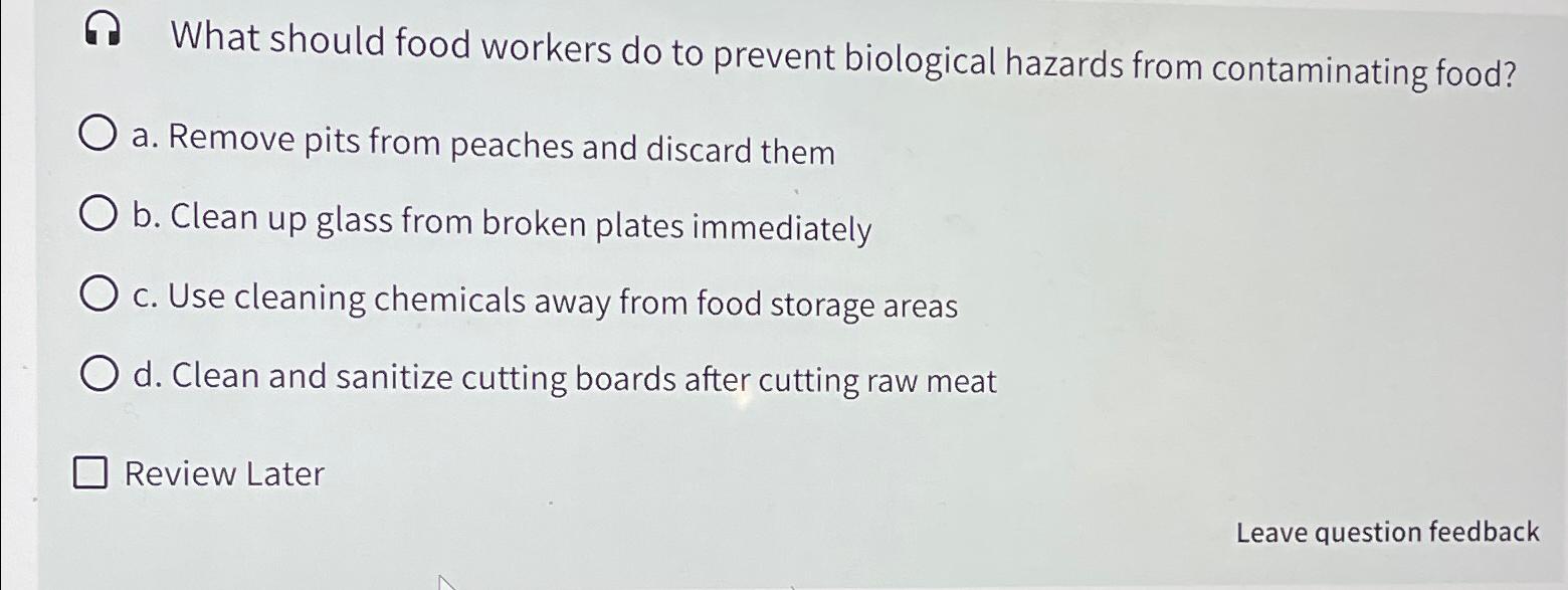 Solved What should food workers do to prevent biological