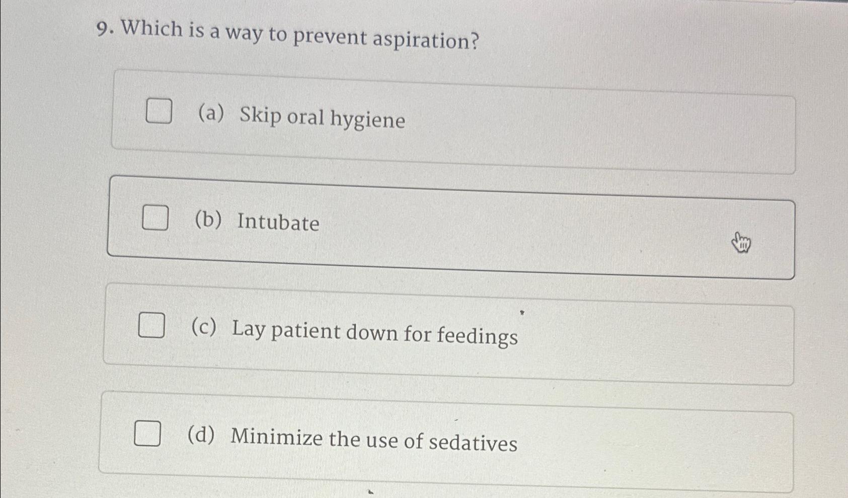 Solved Which is a way to prevent aspiration?(a) Skip oral