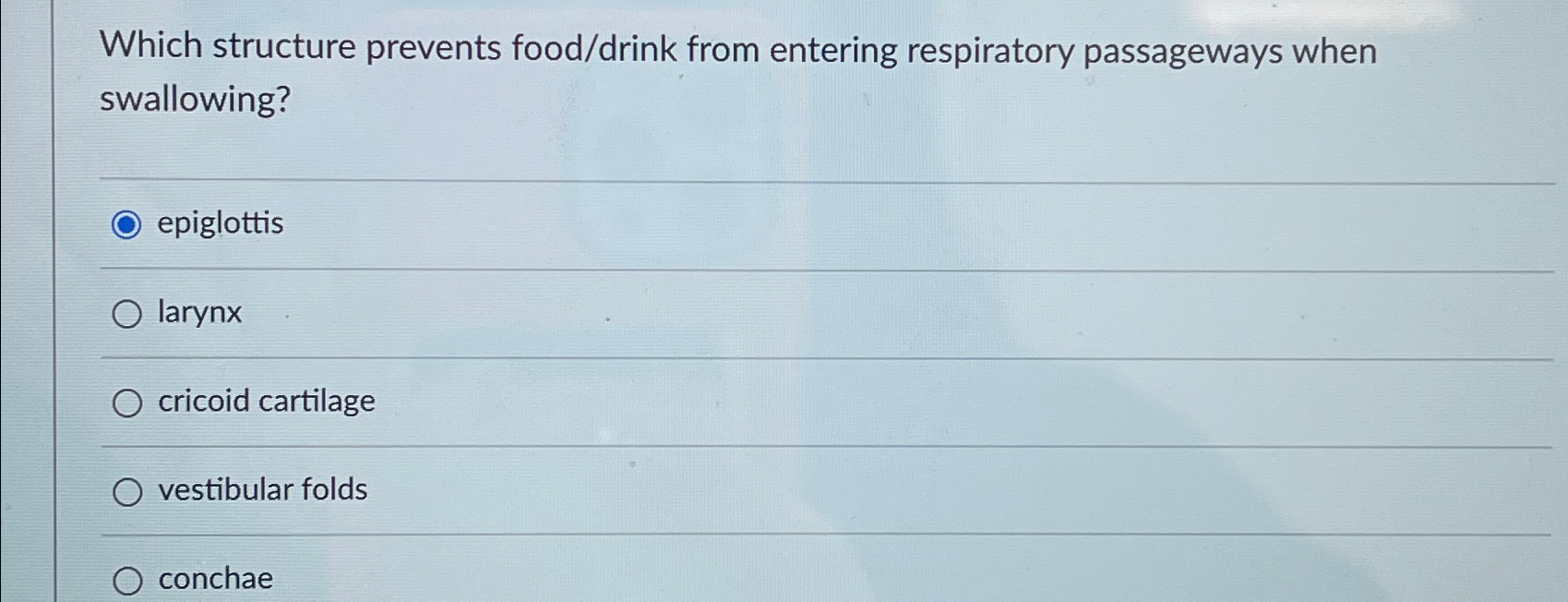 Solved Which structure prevents food/drink from entering