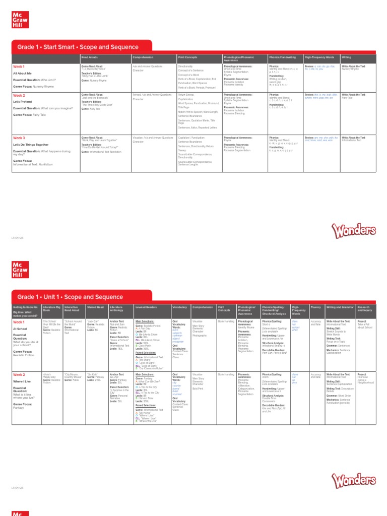 Wonders 2023 Grade 1 Scope and Sequence PDF
